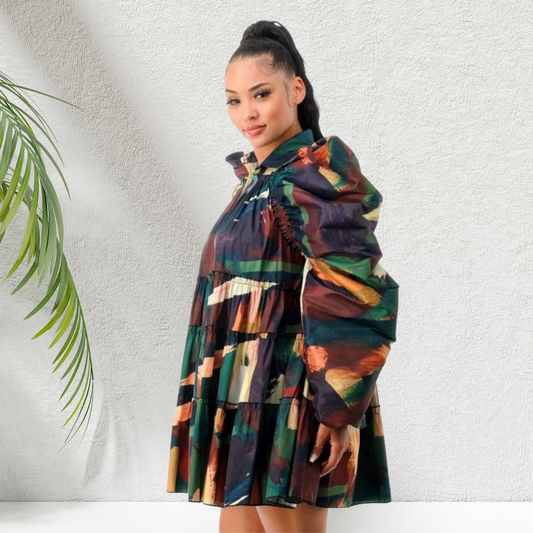 Balloon Long Sleeve Dress - Multi